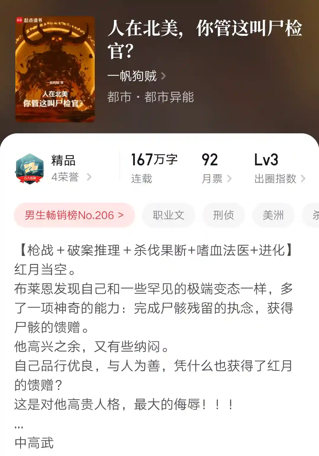 6、《人在北美,你管这叫尸检官?》167万字完本