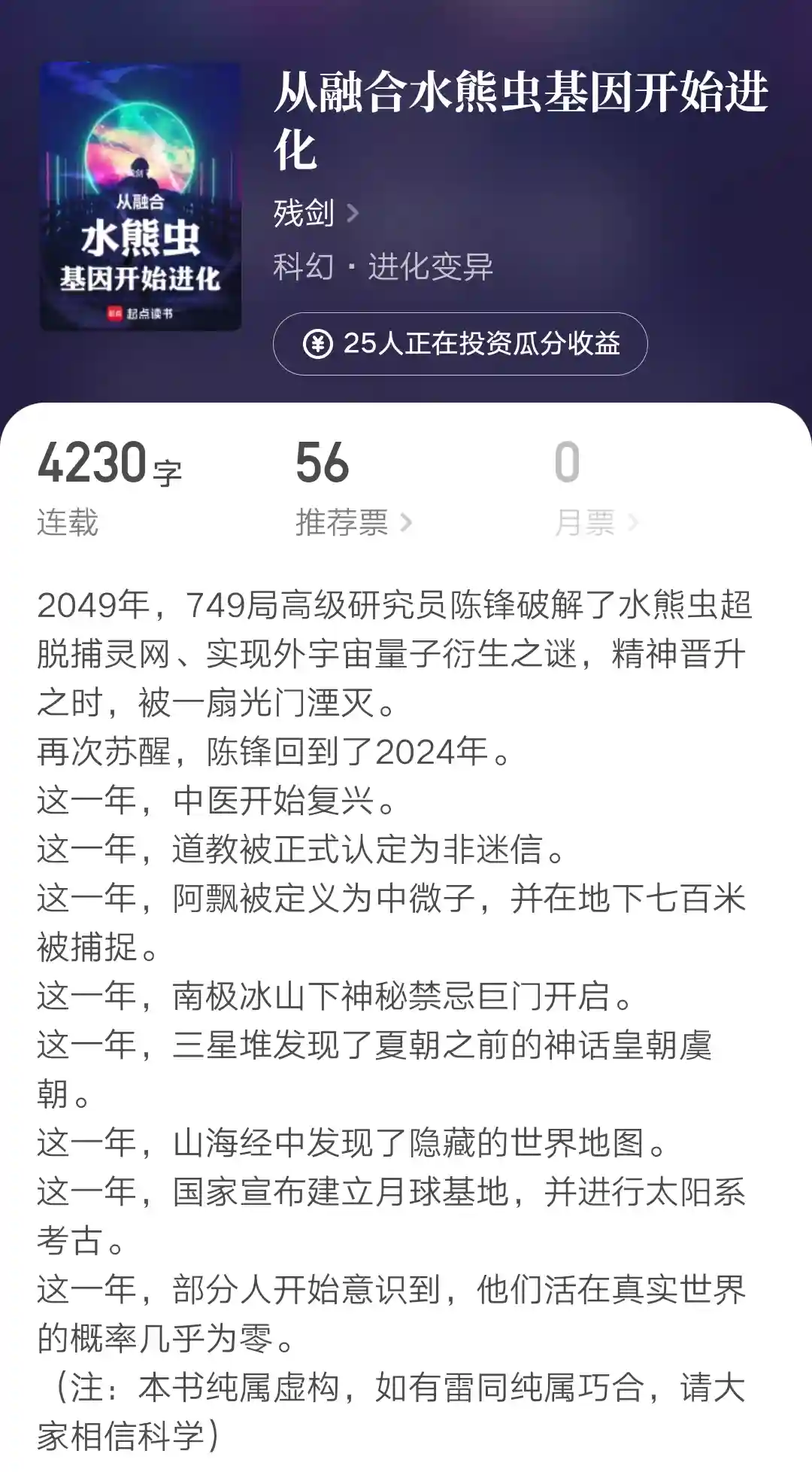 残剑大神最近几年状态也是起伏不定,这本进化文不知道能否扭转颓势。