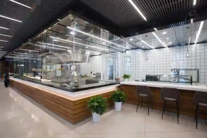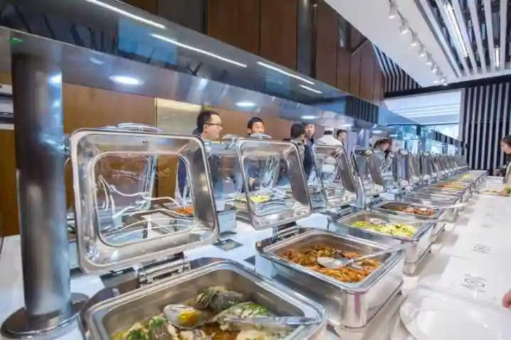 走进餐厅,扑面而来的食物香味挑逗着嗅觉和味蕾。中午11点,透明玻璃窗前,学生已经排起长队,点餐、取餐、就餐,全部在吧台上完成。玻璃窗内,食堂师傅连轴转,为学生制作精美食物。