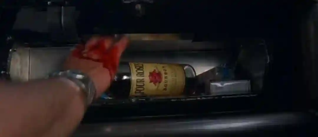 当电影跳转到田纳西州的场景时,威士忌又出来客串了。受伤的特技演员StuntmanMike把车开到一条路上,拿着一瓶四朵玫瑰FourRoses。他喝了一口酒,然后倒了一些,然后又痛饮了一大口。