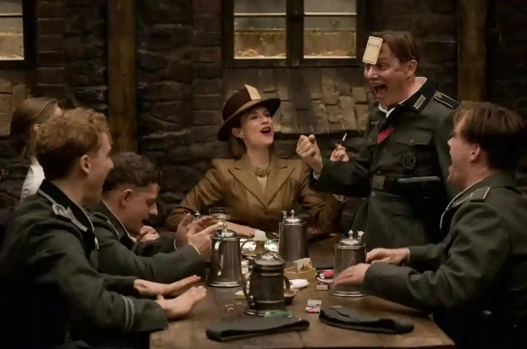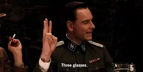 当法鲨冒充德国士兵在小酒馆里与盖世太保赫尔斯特伦少校对峙时,他用错误的手势点了三杯威士忌,让自己暴露了间谍身份。
