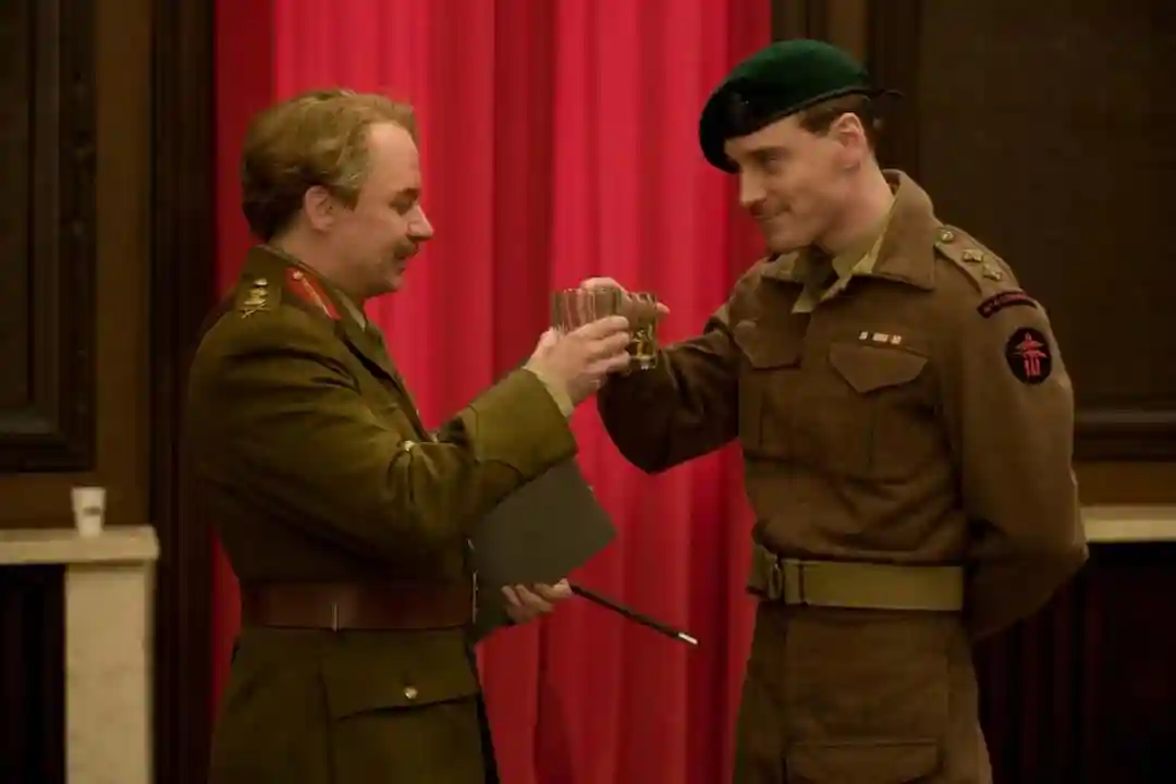 当英国长官费内奇将军召集了MichaelFassber饰演的阿尔奇中尉,并邀请他喝一杯酒时,阿尔奇中尉乖巧地回答:“如果您给我点一杯苏格兰威士忌加白开水,我就会喝一杯苏格兰威士忌加白开水”,这杯酒也暗示了他的结局。