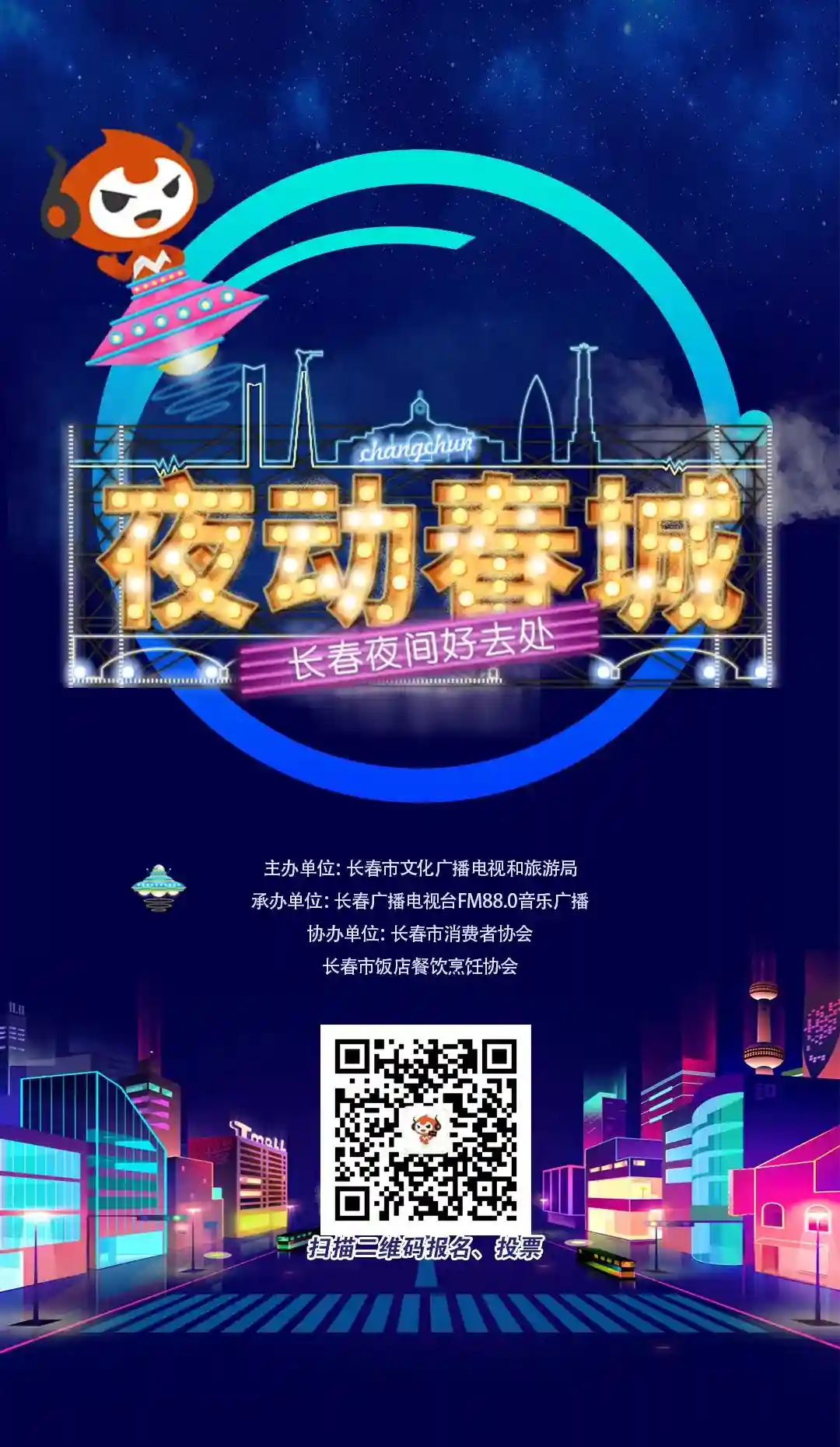 为点亮长春市“夜经济”,5月11日,由长春市文化广播电视和旅游局主办,长春市消费者协会、长春市饭店餐饮烹饪协会协办的“夜动春城——长春夜间好去处”系列十佳项目评选活动正式启动。率先全市文旅行业打开一扇窗口,全面丰富市民夜晚娱乐生活,树立文旅行业品牌,提升市场消费信心。