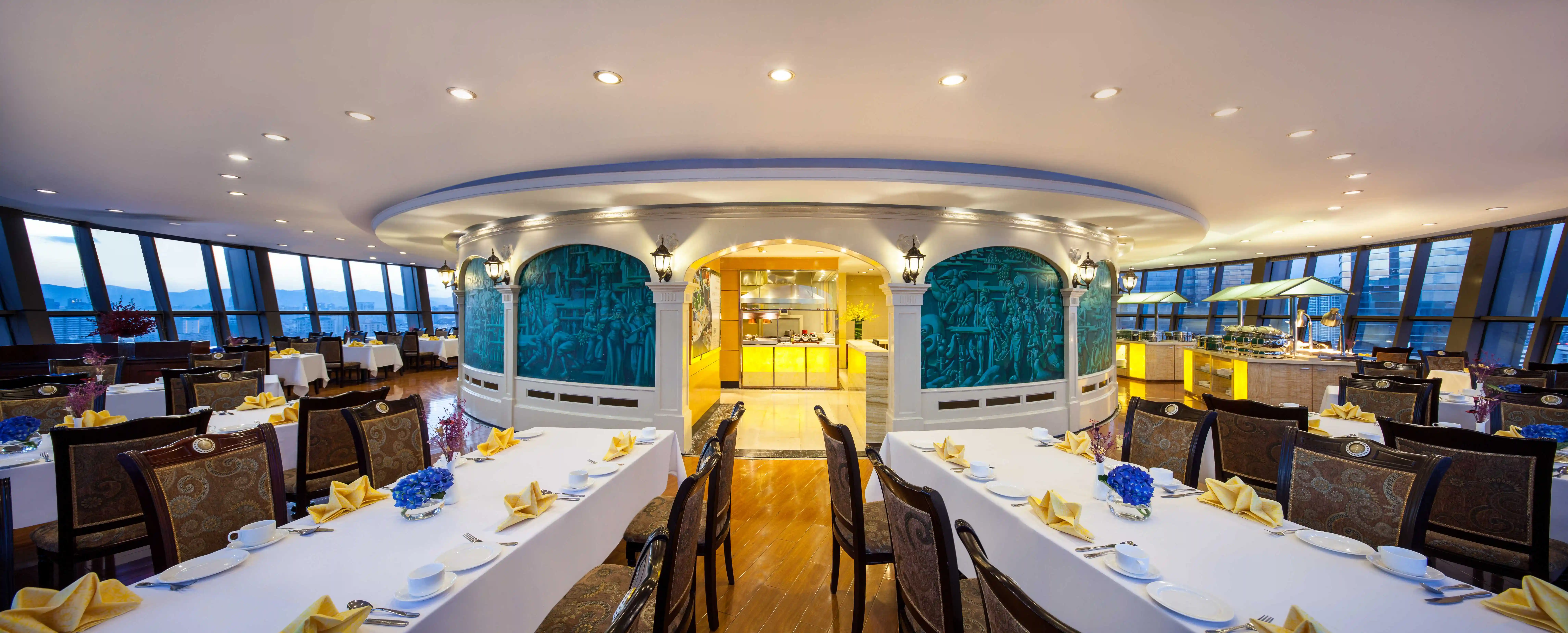 2.自助餐厅最大的特色就是这是全昆明唯一一个会旋转的餐厅,这有可能会有一些人觉得不可思议,还会有人以为是旋转小火锅,,注意啦是餐厅旋转哦,也就是说你在坐着用餐,但是你看见的外边的景色是随时在动的,初步估计餐厅旋转一周需要1个小时左右。这个就比较适合约会啦。