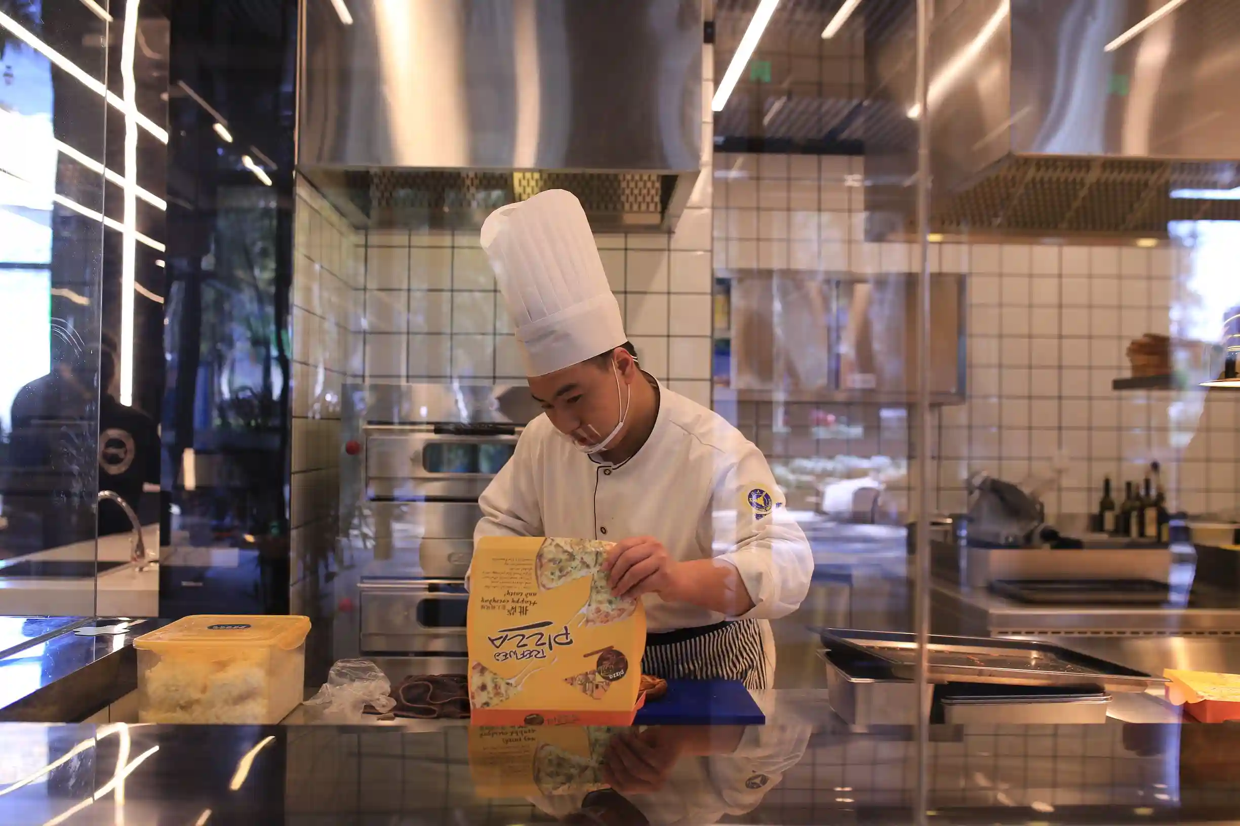 全透明的厨房,隔着玻璃,能看到面团到披萨的奇妙经历,也能看到美味套餐的出炉过程