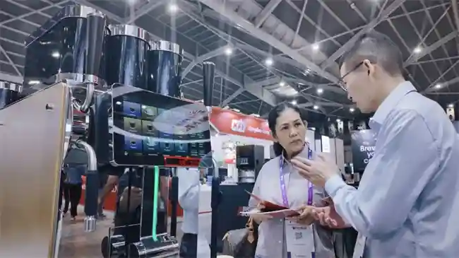 展会现场,咖博士展台前海内外宾客络绎不绝,吸引着东南亚各国乃至全球专业来客,工作人员热情地为每一位到访者介绍产品的特点和优势,并现场演示了咖啡制作的便捷流程,让人们充分感受到了全自动咖啡机的魅力。