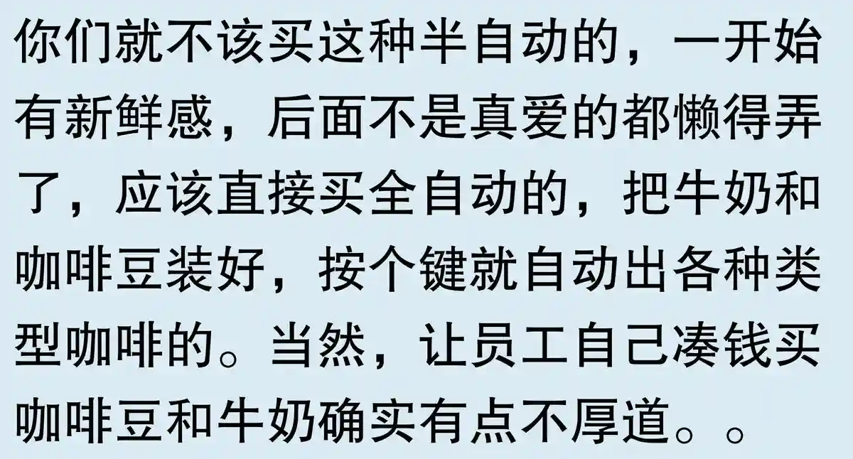 单位配咖啡机配半自动的你是第一个,不应该是商用机,最差也是全自动咖啡机呀,你这玩意又麻烦还考验技术,关键保洁阿姨忍不了啊