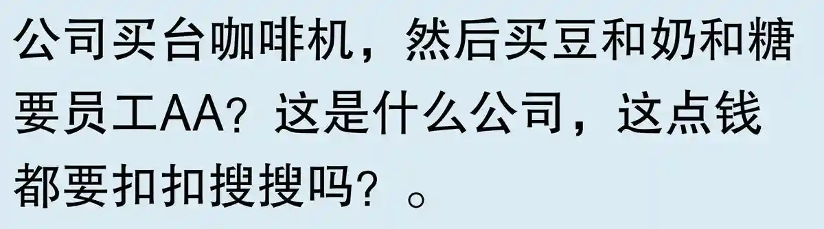 这个跟咖啡机没多大问题,问题出在公司不能买牛奶和咖啡豆。需要工人自备,到头来都是因为公司没卖豆了,小气得很