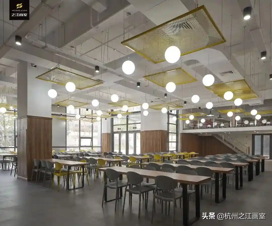 食堂采用半透明化设计,无论是后厨的运行还是管理监督,都有实际可行性。整个食堂明亮、宽敞,浅白色的桌椅因学生用餐需求量身打造,根据现有格局安装摆放,将空间最大化利用。