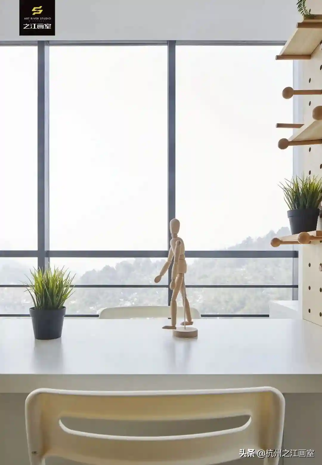之江画室通过前期的拆墙设计,加上后期空间分布,每个教室都有足够的自然光源,首先保证了眼睛的舒适性,在色彩学习中对颜色的把握可以更为精准。