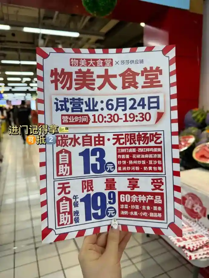 比如,酒店自助向非房客市场开放,费尔蒙、喜来登、希尔顿以及北京新国贸饭店等推出了自助餐卡;商超也开始布局自助堂食,永辉超市开设了15元自助食堂,物美超市则推出了13元和19.9元两档不同价位的自助餐服务。