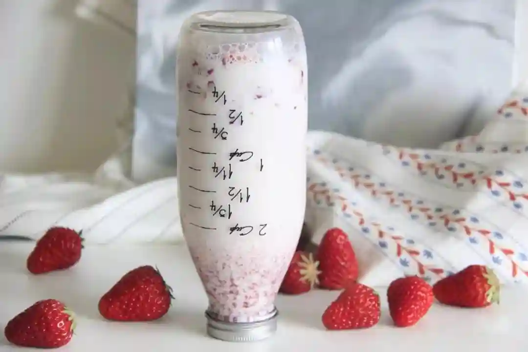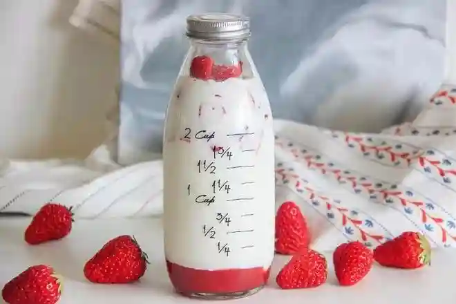 1)草莓可以用其他水果代替,做成其它口味的牛奶