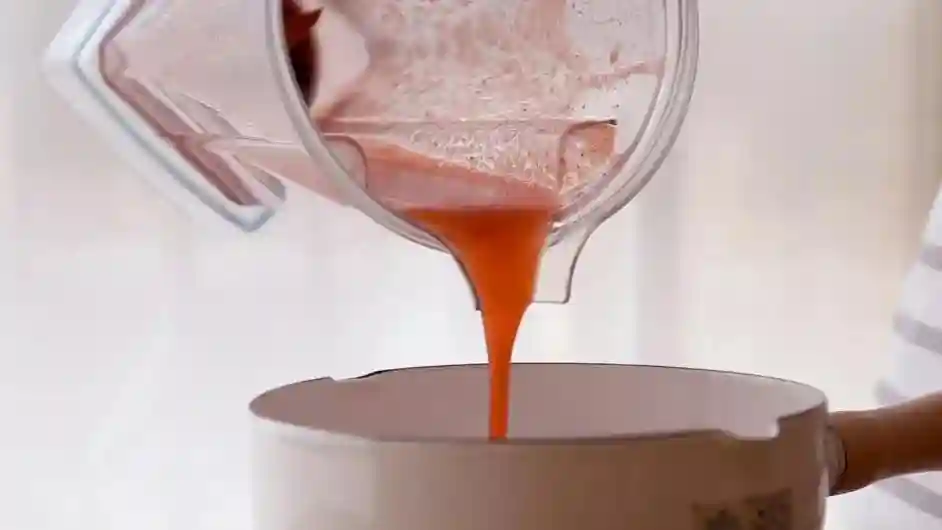 1/将100g草莓洗净去蒂,用搅拌机打成泥。