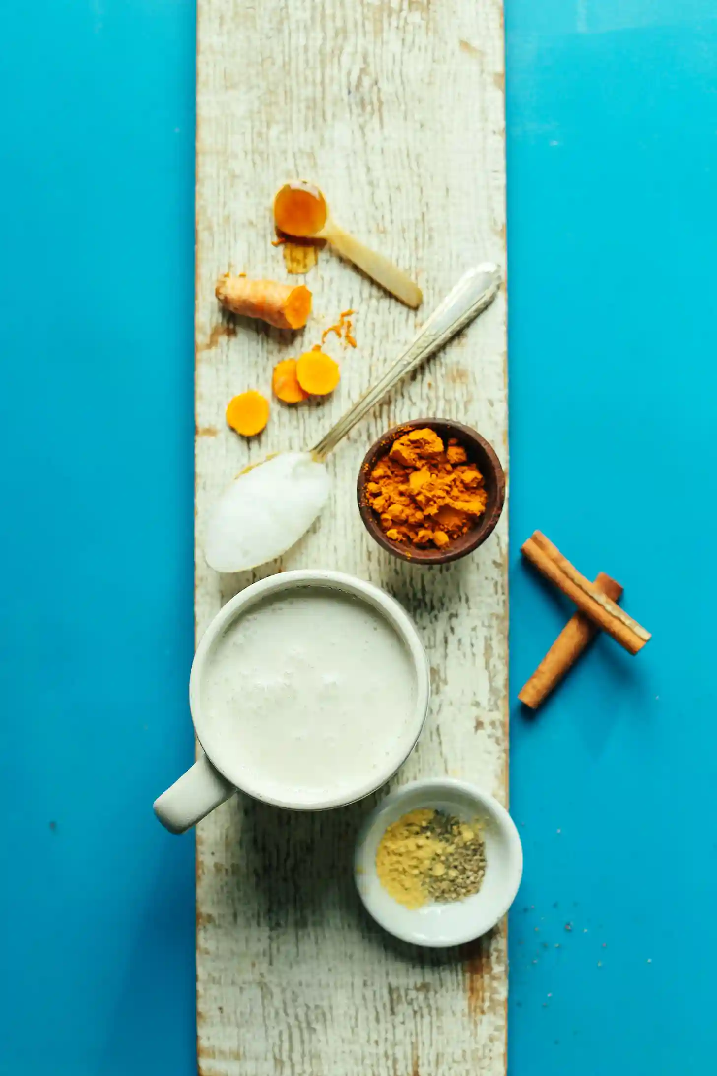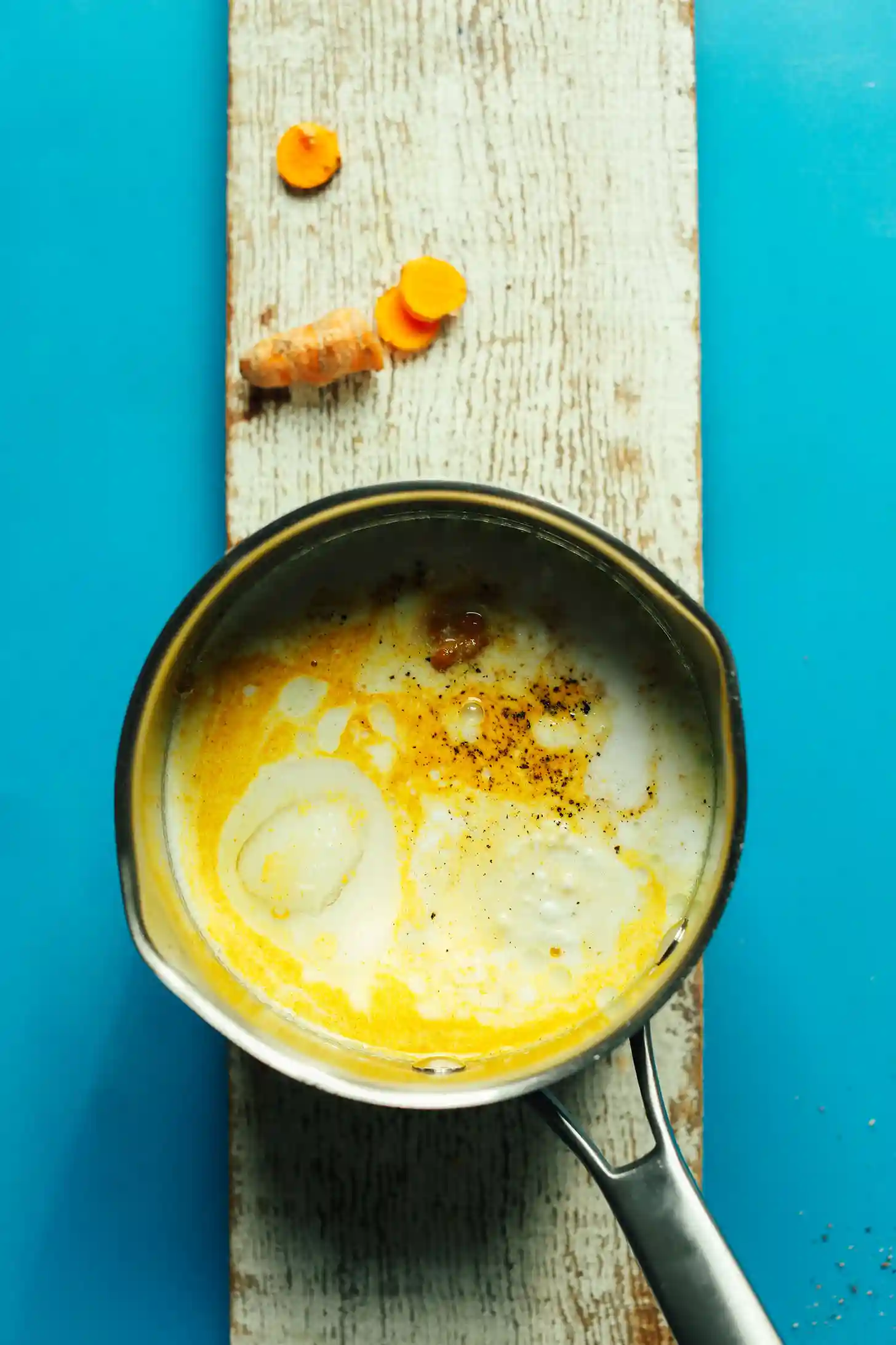 如何制作黄金牛奶我们发现,将淡味椰子奶和不加糖的杏仁奶混合使用会形成完美的乳脂。我们尝试过使用新鲜姜黄和磨碎的姜黄,不得不说磨碎的味道更好!