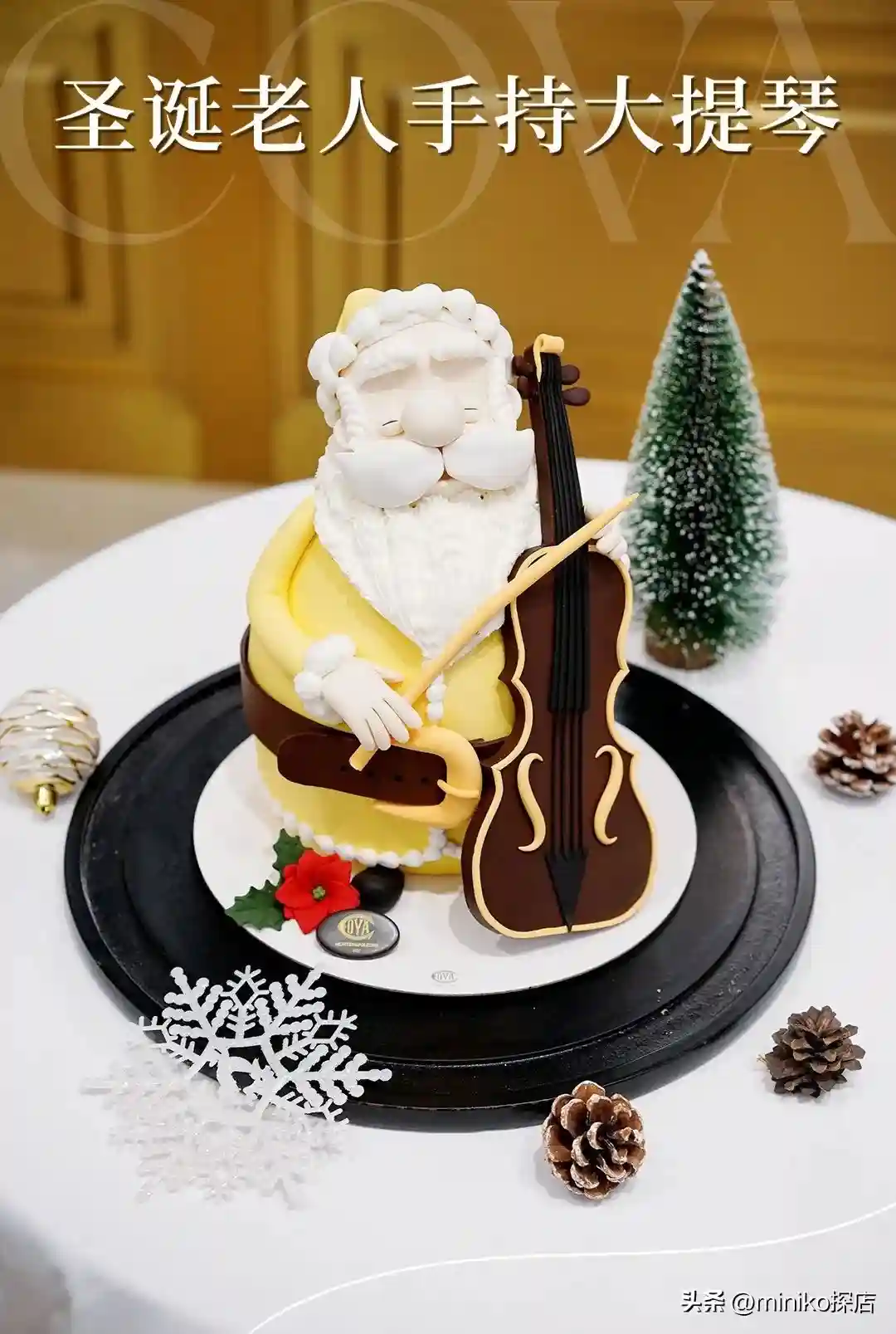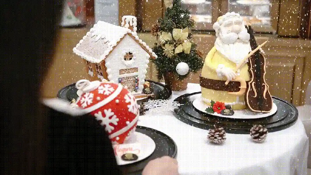 在众人面前亮出“圣诞老人手持大提琴”,试问谁不惊叹于它灵动的造型?以巧克力沙架蛋糕搭配巧克力黄油奶油组成内芯,用精湛翻糖工艺打造圣诞老人造型,匠心之作,拨动着甜品爱好者的心弦。