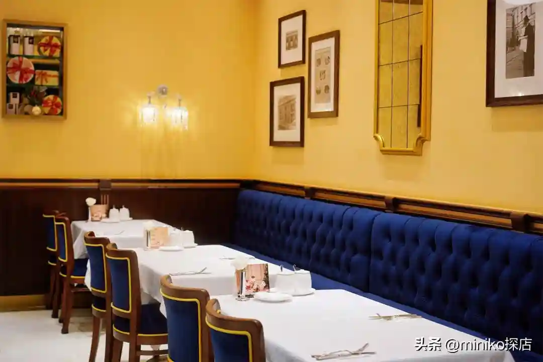 复古元素交融,有上个世纪的经典又不失现代的简洁与优雅。蓝色丝绒座椅搭配黄色墙面;意大利巧匠们制作的COVA专属水晶吊灯;烫金滚边和桌椅的摆放,都印刻着COVA的独特韵味。