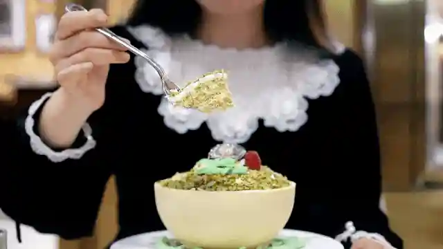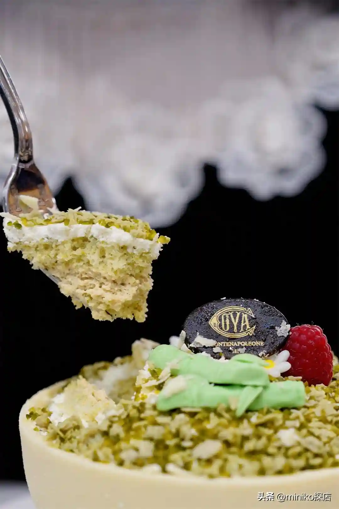 内里是开心果提拉米苏,无比惊艳,轻舀,蛋糕松软到像会呼吸一般。