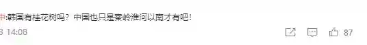 另一名湖北网友回复说:桂花是中国传统十大名花之一,原产于中国,韩国有个鸟的桂花。