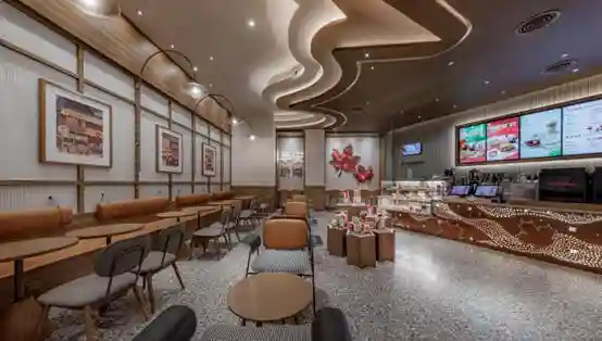 位于济南万象城的济南首店,在设计上将Tims枫叶logo与济南的标志性建筑物相融合,打造了专属于济南这座城市的专属城市空间;在这个空间里不仅能够享受咖啡暖食的味蕾刺激,更能感受城市的温度。