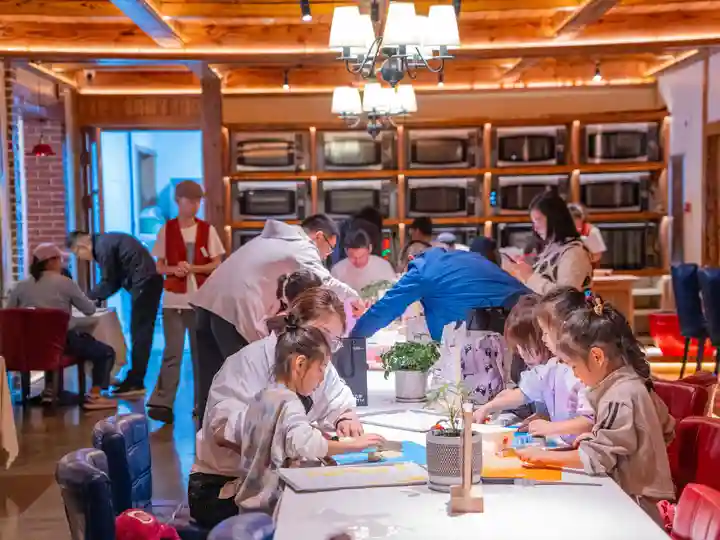 古朴的木屋、迷宫般的城堡,这些建筑群落犹如在山涧、溪旁、湖畔中自然长出。趣味十足的文创体验馆更是深受年轻群体的追捧,游客可以在牛烘烘·烘焙体验馆体验自己动手做月饼,“守味”中秋;在研磨时光·咖啡文创体验馆体验咖啡制作的浪漫过程;在梦枕书香·休闲阅读体验馆感受浓浓的文化氛围,利用干花等各种小物件,制作专属的中秋节日相框……这些中秋假期的创新玩法以及超值体验,让游玩充满了仪式感。