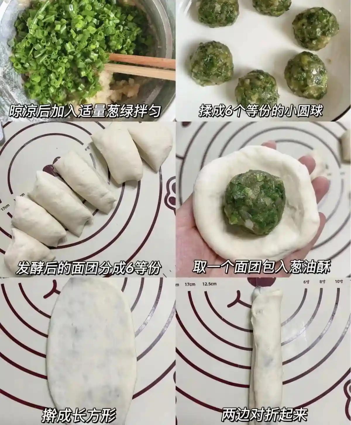 将醒好的面团分成若干个小剂子,擀成圆形薄皮,中央涂抹一层油酥,撒上切细的葱花、少许食盐与五香粉,卷起后再轻轻按扁,制成饼胚。