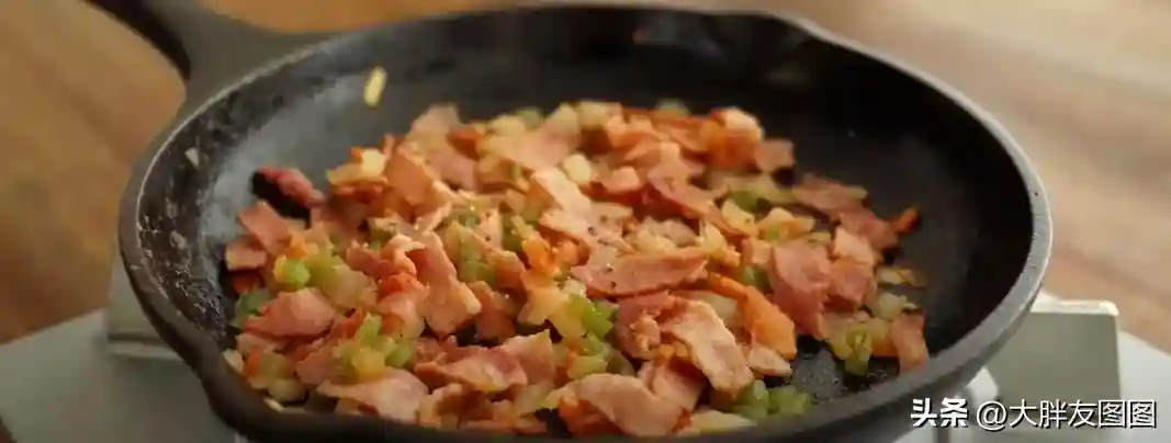 填满刚才炒熟的培根杂菜。