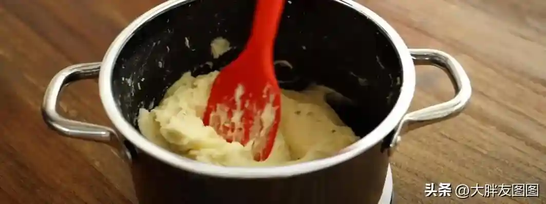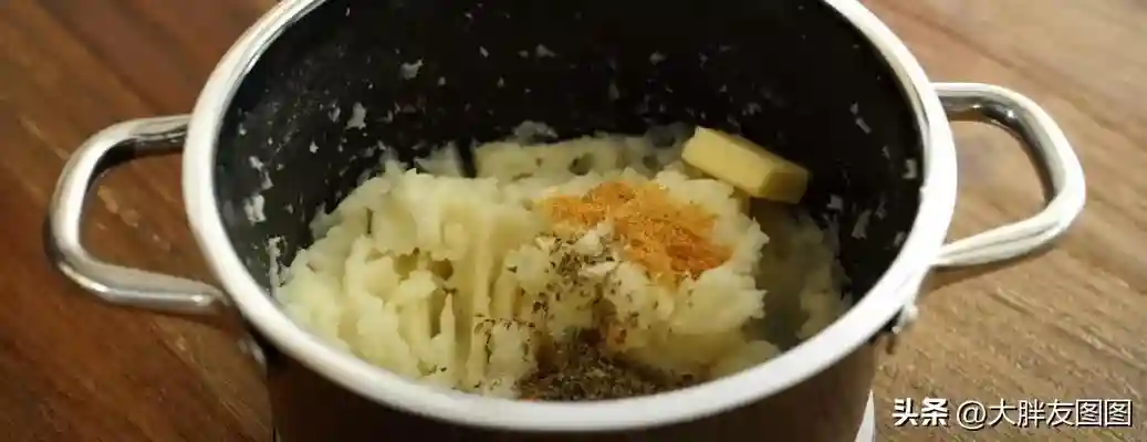 土豆放凉以后碾压成泥,加入鸡蛋,玉米淀粉,盐,黑胡椒,黄芝士粉混合均匀,你将得到一份芝士口味的绵密土豆泥。没有芝士粉可以省略。