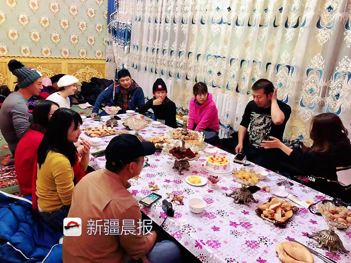 当晚,“小海波澜XHBL"和国内旅游达人回到新源县那拉提镇阿尔善民宿,仍意犹未尽,喝奶茶,品糕点,玩游戏。