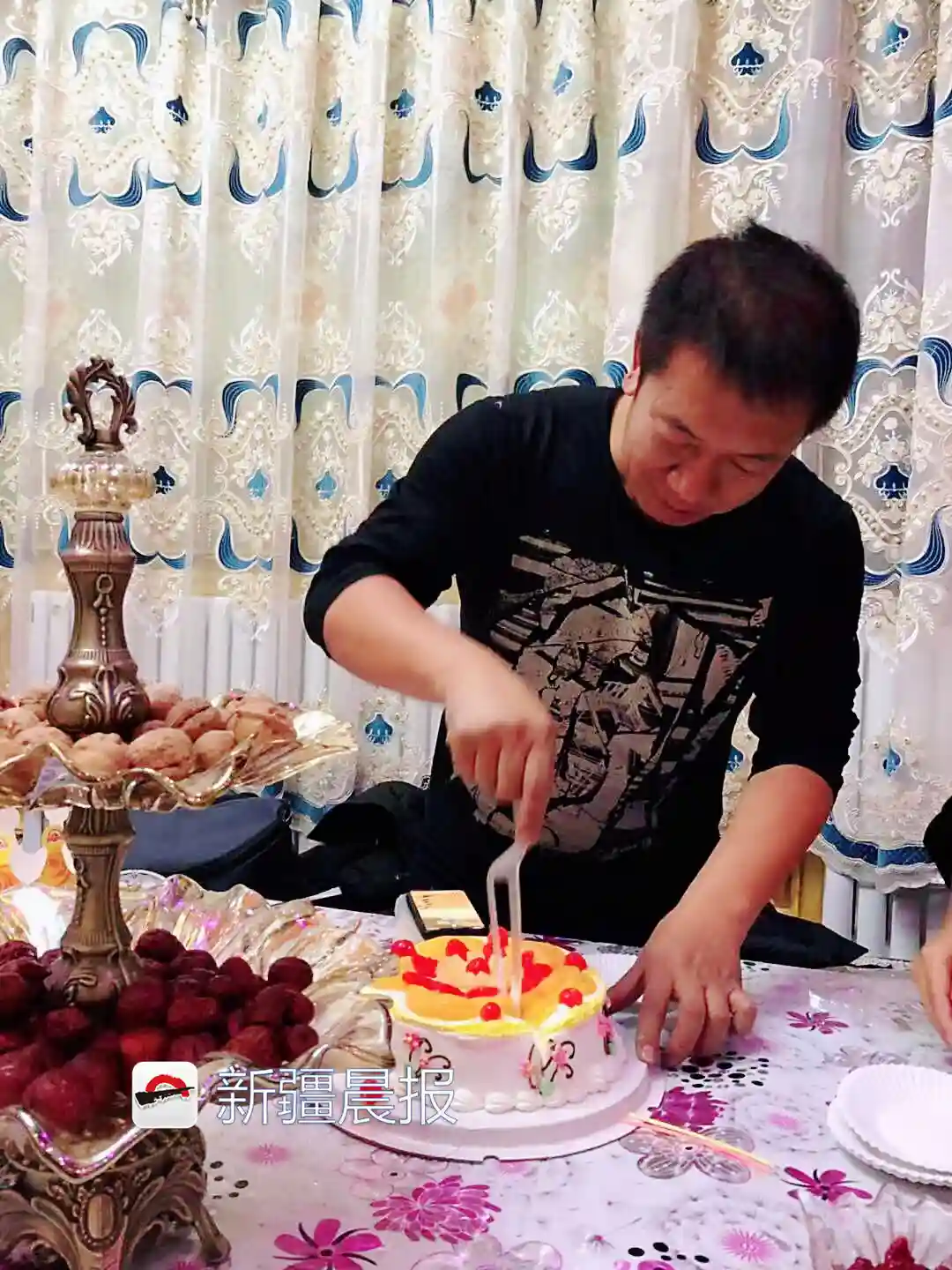 原来那拉提景区工作人员提前知道了他的生日,特意准备了生日蛋糕。蜡烛点起来,生日歌唱起来。许了愿,他切了蛋糕,连已经洗漱完毕准备就寝的”大美爱拉“也品尝了这份甜蜜。“小海波澜XHBL"特意给民宿主人也送上了生日蛋糕,感谢主人家热情款待。