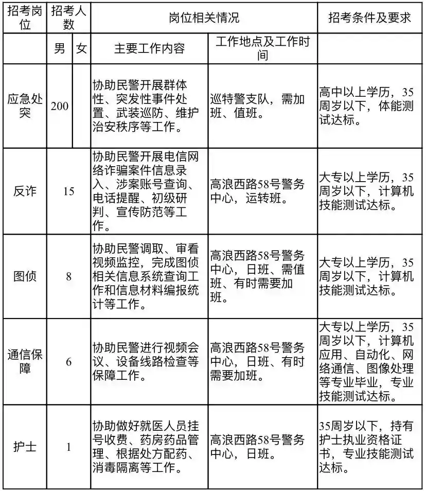 因公安工作需要,决定面向社会公开招聘警务辅助人员230名,现将有关事项公告如下: