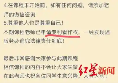 同时还有学员质疑,在糖霜饼干的课程宣传中,张老师用了“独家首创”这样的词汇,这在新广告法中是禁止使用的。而“购买课程必看”里,她清楚写明“本期课程老师已申请专利著作权”,但她并没法提供专利号等等,这严重违反了广告法第十二条:广告中涉及专利产品或者专利方法的,应当标明专利号和专利种类。未取得专利权的,不得在广告中谎称取得专利权……