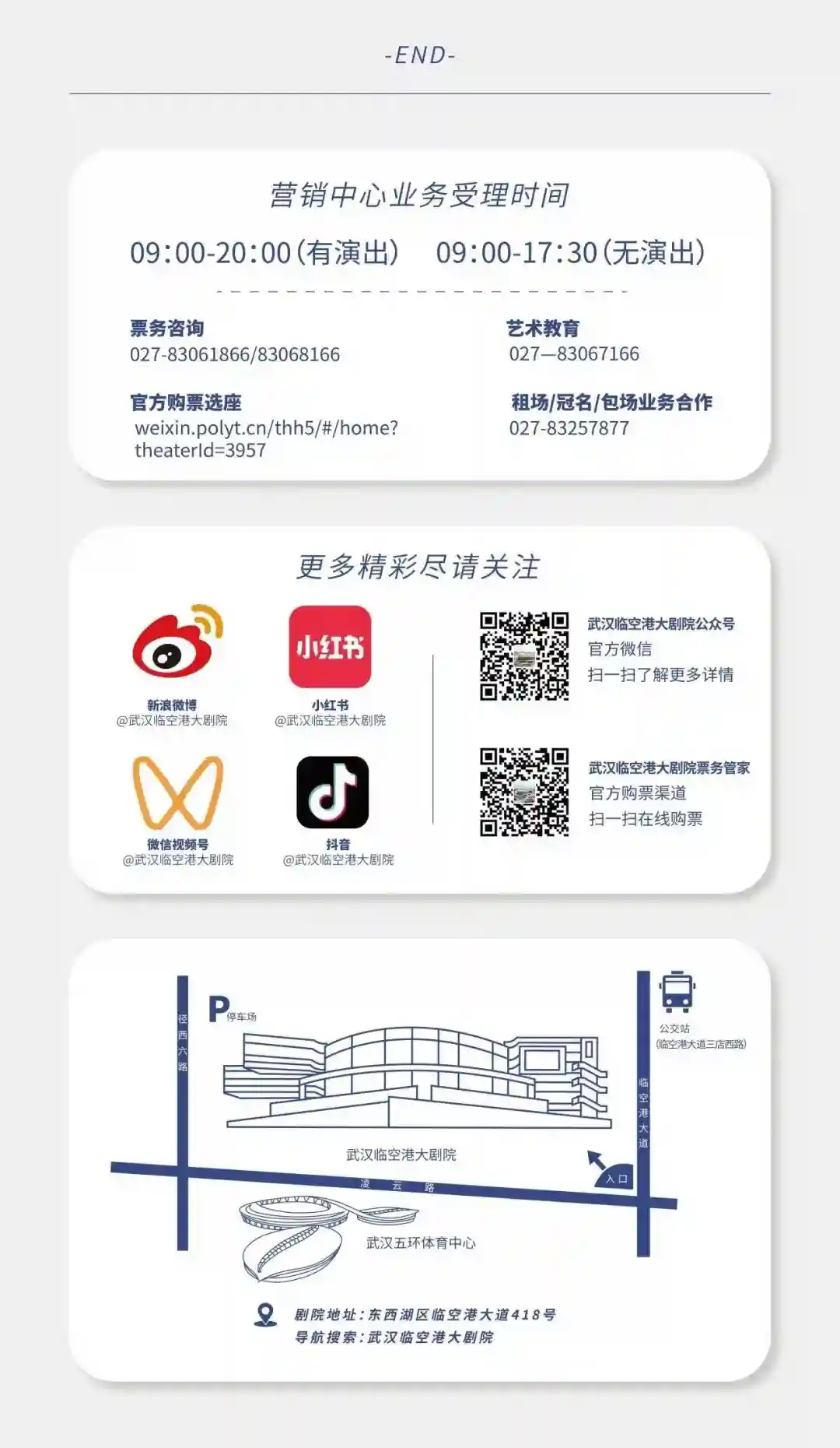 *取票时间:13:00至演出前一小时前凭取票码至武汉临空港影城大剧院售票处取票;演出当日开演前一小时后可至演出大厅入口处取票。