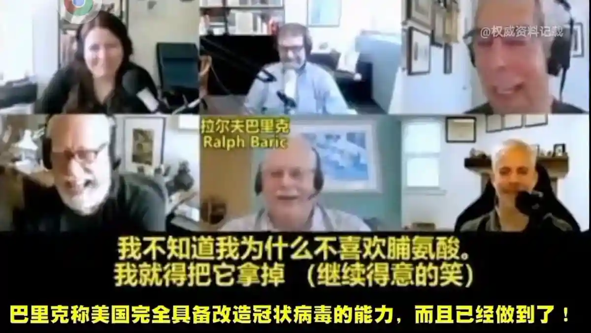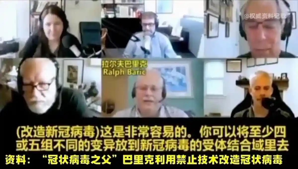 德尔塔突变株相比原始毒株,德尔塔突变株一共有13个突变,其中4个出现在新冠病毒表面的刺突蛋白上:D614G,T478K,L452R,P681R[9]。这几个突变,特别是T478K和L452R这两个位置的突变,改变了刺突蛋白的结构,让它更容易和人体细胞表面的受体结合,更容易在复制和传播;也更容易逃脱人体免疫系统的识别。而作为拥有改变新冠病毒刺突蛋白结构的这些病毒功能增强技术(GOF),美国冠状病毒之父巴里克可轻而易举就在美国生化实验室内制造出来。巴里克就曾在一家美国电视媒体公开采访讨论中洋洋得意地说:“改造冠状病毒是非常容易的,你可以将至少四或五组不同的变异放到冠状病毒的受体结合域里去,使得冠状病毒可以和老鼠的ACE2受体结合。”电视中他表示通过修改了两处氨基酸、脯氨酸残基以增强重组冠状病毒感染能力。也就是对重组冠状病毒功能获得性病毒毒性进行了增强改造(Gain-of-function)。这为我们留下了巴里克进行重组冠状病毒实验室改造病毒毒性的证据。