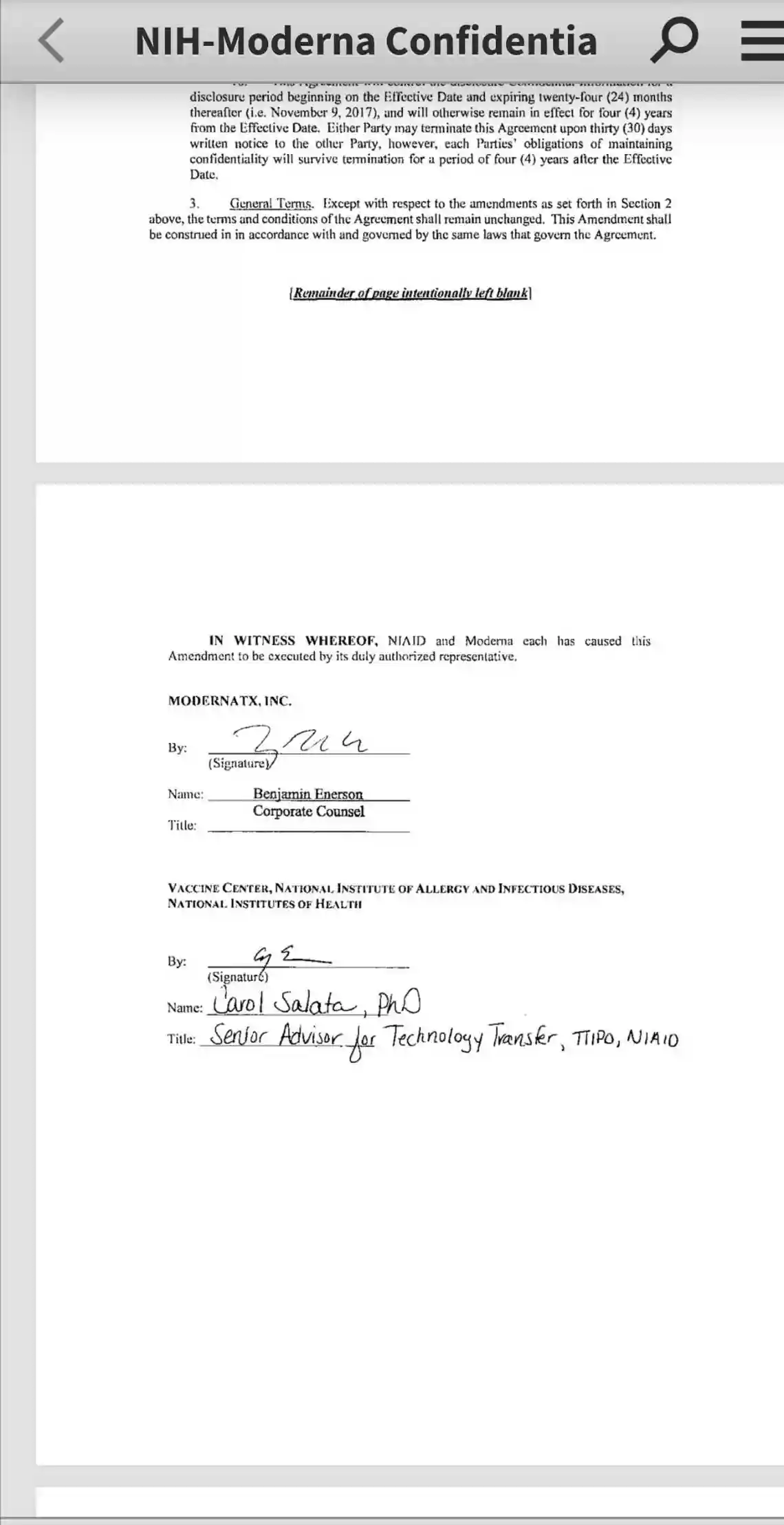 5)在美国国防部推出涉及冠状病毒生化防御新招标计划项目的2019年同个月的5月份,美国国立卫生研究院(NIH)与后来推出新冠疫苗的莫德纳公司签订了冠状病毒疫苗研究合作协议。而美国国立卫生研究院与莫德纳公司合作的研究机构,是北卡罗莱纳大学的巴里克实验室。到2019年12月12日在武汉疫情爆发之前这三方正式签署了长达153页的合作进行莫德纳疫苗测试的保密协议。