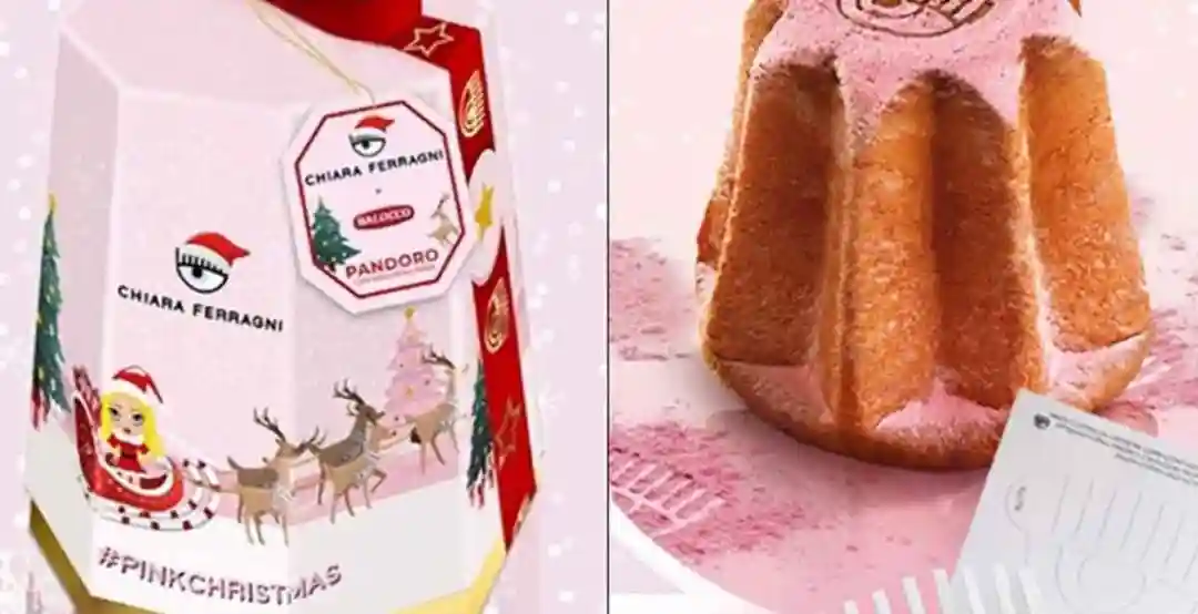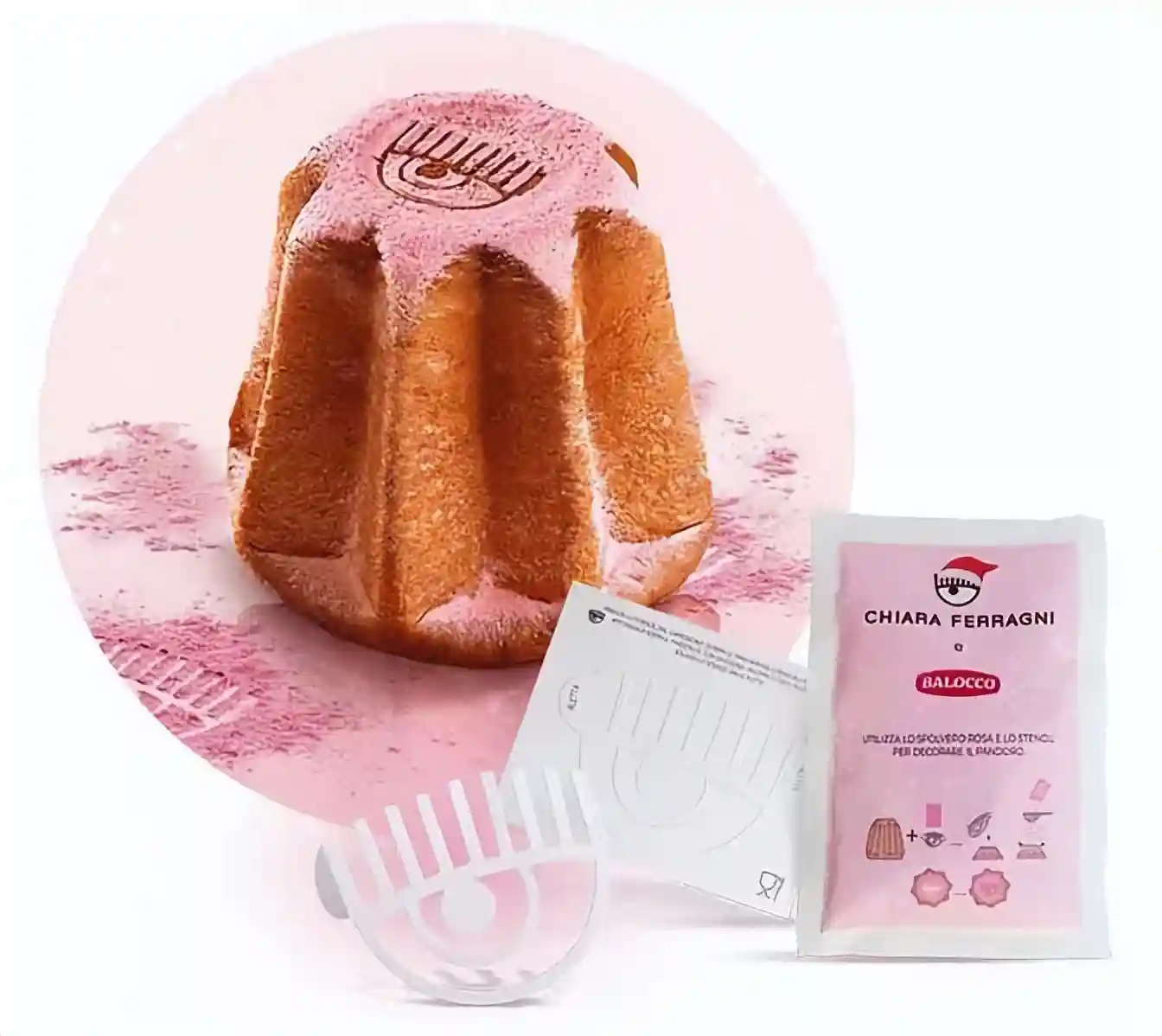 当时,Ferragni与意大利知名糕点品牌Balocco推出了一款联名潘多洛(Pandoro,在意大利圣诞节期间流行的点心)。