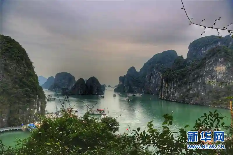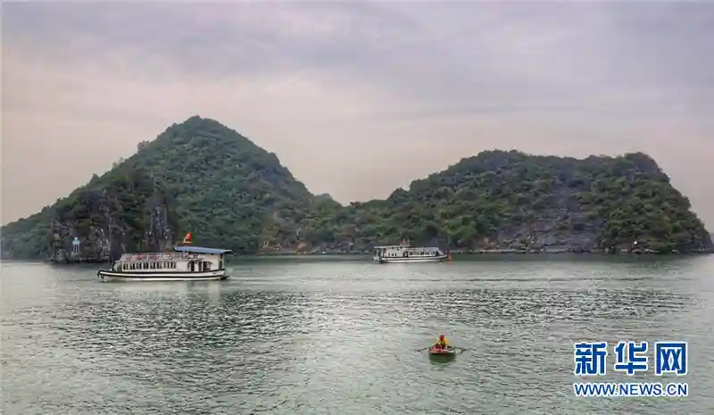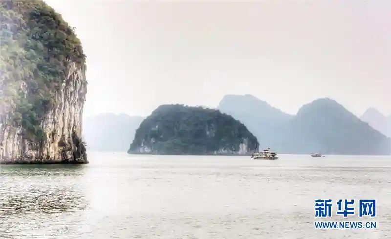 下龙湾的岩岛像浮在水面上的浮雕一样。新华网发(安永明摄)