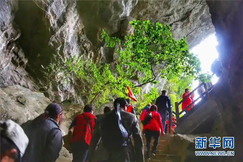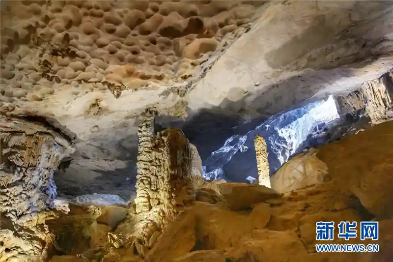 钟乳石等岩石交融构成的岛屿内部。新华网发(安永明摄)