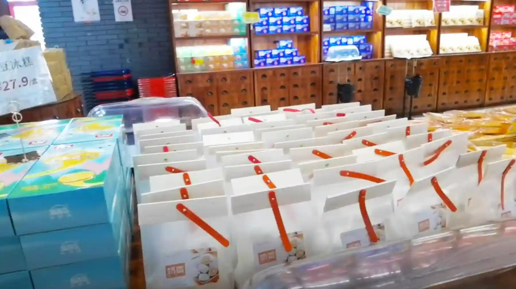 穿过展区,到了扬子江非遗文化馆的门店区域,这里相当于是一个模拟的门店,里面摆满了各式各样的糕点。品牌主打的特色糕点,精包装的礼盒;各个平包装的,摆在区域里,营业员有序介绍,展示成品。参观的人都忍不住买一些品尝,口感确实地道。最喜欢的有各类糕点,芝麻糕和糯米糕,还有饼类,馅饼与酥饼,大小与形状不同,口感突出酥脆和香糯,就着饮料,吃起来确实很爽口。