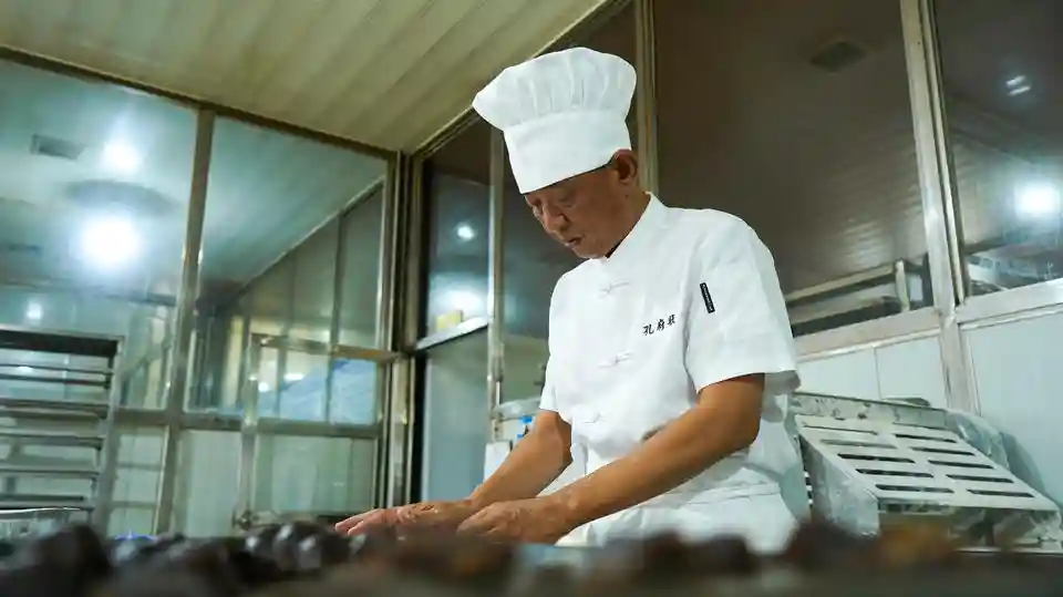 “从配料到烘烤,这些传统糕点的每一个步骤都要经过长时间的学习和研究。”这句话的底气,源于孔祥昆与孔府糕点打了26年交道的缘故。“机缘巧合下,我在22岁的时候成为了一名糕点师傅,跟着老师傅学做传统糕点的老手艺,也学到了不少孔府糕点的历史。”孔祥昆笑着解释道,正因如此,他与孔府糕点结下了不解之缘,也让他对这项传统老手艺生了情。“孔府糕点出自官家,所以其文字记载少之又少,为了更多的了解不同孔府糕点的制作方法,只能通过老师傅们的‘口口相传’。”