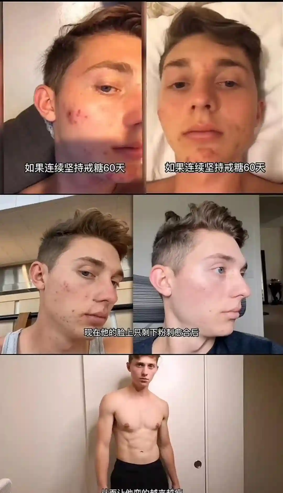 不过,断糖这事儿也不是都那么惨。有不少人还真就靠着断糖逆袭了。就像国外那个布兰登・威廉,那可是个百万粉丝大博主。他搞了个断糖60天挑战,好家伙,这两个月下来,变化大得让人惊掉下巴。体重跟坐滑梯似的往下掉,身材变得那叫一个有型,腹肌都快能当搓衣板了。皮肤也像是被重新装修了一样,光滑细腻,痘痘啥的全跑光了。生活习惯也变得自律得不像话,早睡早起,天天健身,简直就是粉丝们眼中的男神标杆。