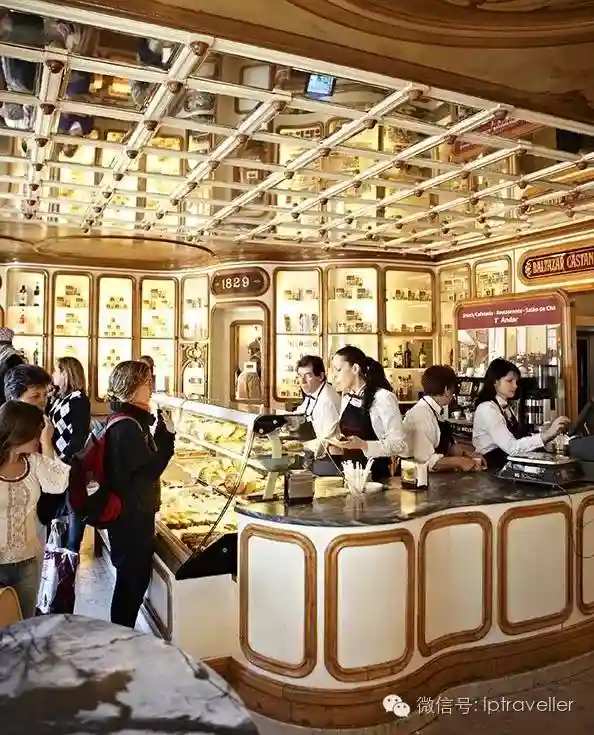 他们蜂拥而至,在里斯本市中心的每家糕点店前排起长龙般的队伍——他们就是所谓的蛋挞瘾君子。纳什那尔(ConfeitariaNacional)是一家豪华富丽的咖啡馆,陈设以新艺术主义风格的镜饰,以及由大理石雕刻而成的奥地利咖啡馆式的世纪末风格柜台。排在队首的男子靠着柜台甩下一张钞票,五只诱人的葡式蛋挞便摆在碟中呈至他的面前。底部的松软饼皮金黄酥脆,上面托着亮晶晶颤悠悠的蛋奶羹,洒于其上的肉桂粉也烘烤得恰到好处。