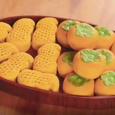 好柿花生月饼寓意~好事发生,一生一世~包含了柿子月饼和花生月饼两款柿子月饼酥软细腻,回味无穷花生月饼满口坚果,脆香健康吃一个好运连连~吃两个心想事成!