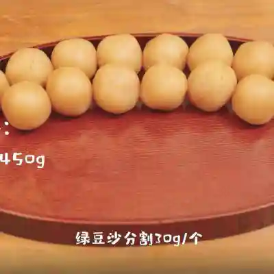 9、将馅料绿豆沙分割成30g/个