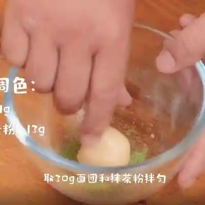 7、取30g面团和抹茶粉拌匀备用