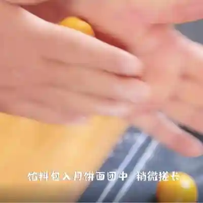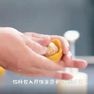 27、将馅料包入月饼面团中