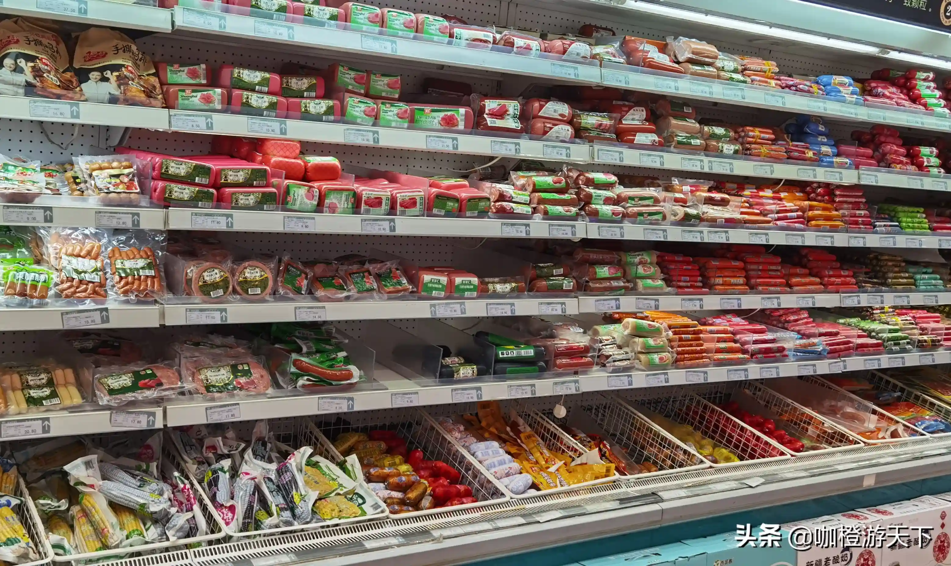 为了迎合不同民族的饮食习惯,在克拉玛依的超市里,其他省份很少能看到的鸡肉肠、牛肉肠(比如在广州超市里,就完全找不到),可以占据货架的很大一部分空间。