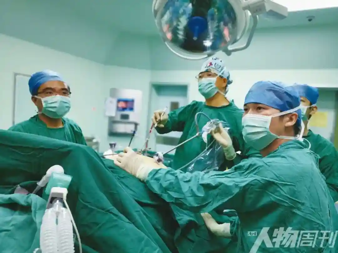 暨南大学附属第一医院肥胖与代谢病外科中心主任王存川在做腹腔镜胃袖状切除术