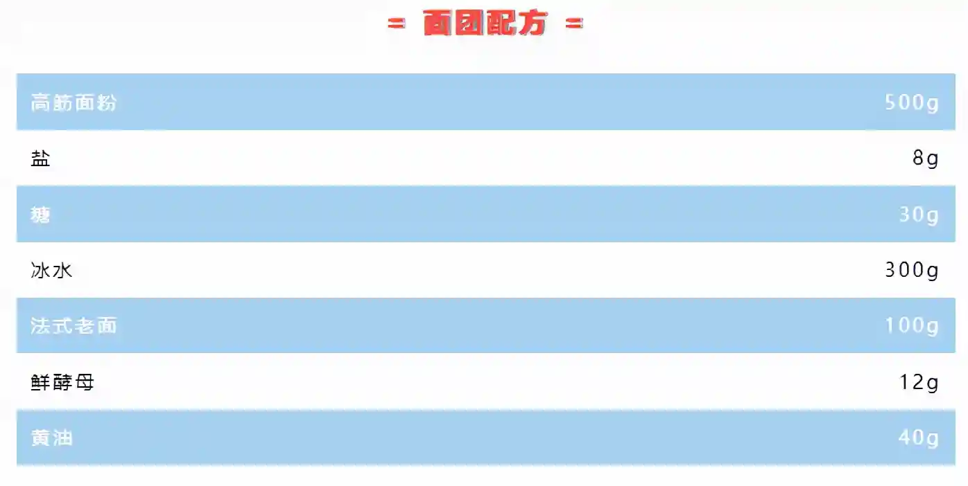 1.将所有原材料(除了法式老面,盐,黄油除外)放在一起搅拌均匀,搅拌成团后加入法式老面,继续慢速搅拌,搅拌至基本扩展后,加入黄油与盐,搅拌至完全扩展出缸,出缸温度26-26℃。