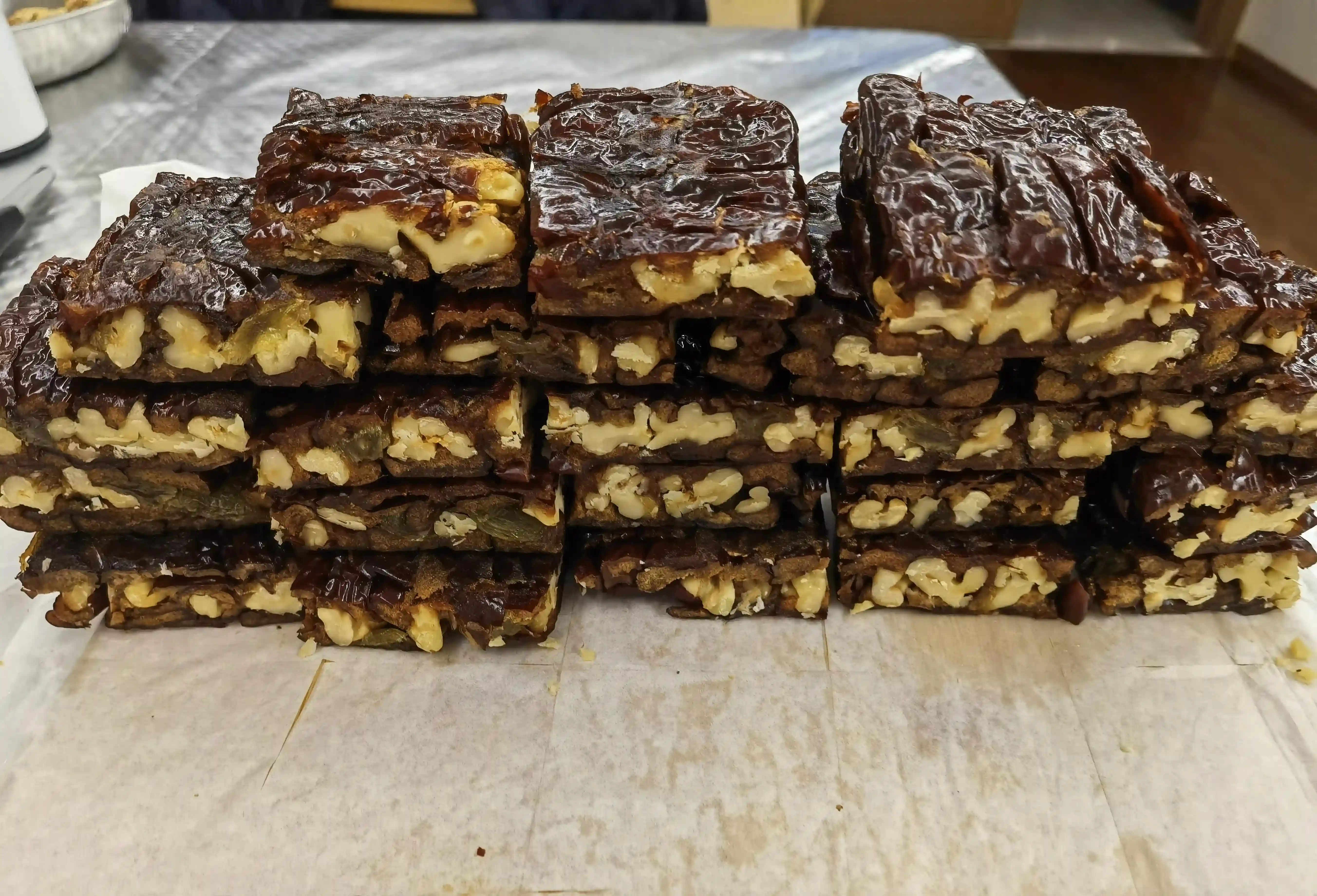 秋天从新疆网购了许多核桃与红枣,怕占地方,核桃去壳、红枣去核后,全部放入冰箱冷冻,打米糊、做糕点用了一部分,还有好几袋,为了尽快吃掉,今天做了枣仁派,没称重,大差不差随意做。