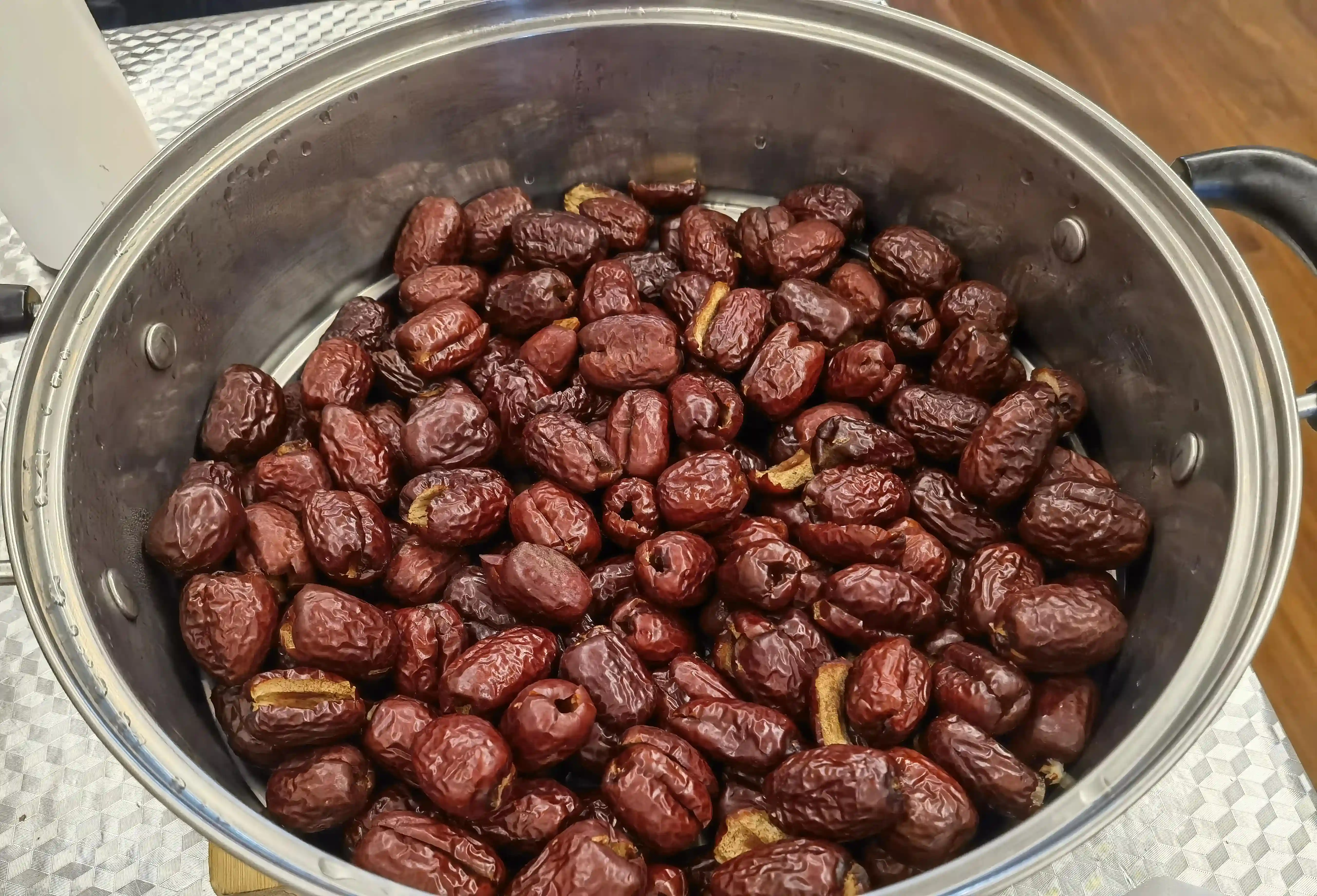 3、蒸红枣:去核的红枣,放蒸锅中开锅后大火蒸30分钟。